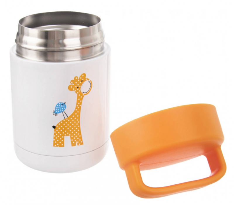 Praktická termonádoba ORION s veselým motívom žirafy udrží pokrmy dlhší čas teplé alebo studené. Je ideálna na polievky pre deti, ovocné desiaty, šaláty či drobné jedlá, či už doma, v škôlke alebo na výletoch.