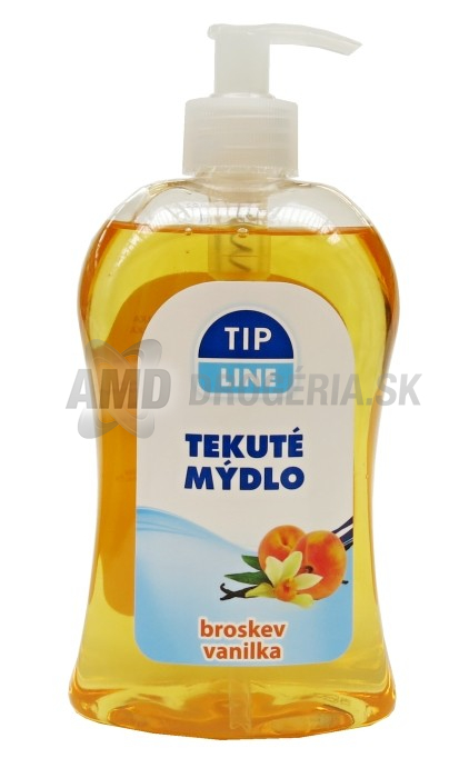Mydlo tekuté s pumpičkou 500ml Tip line - broskyňa, vanilka. Na umývanie rúk a celého tela. Dokonale odstraňuje všetky nečistoty.