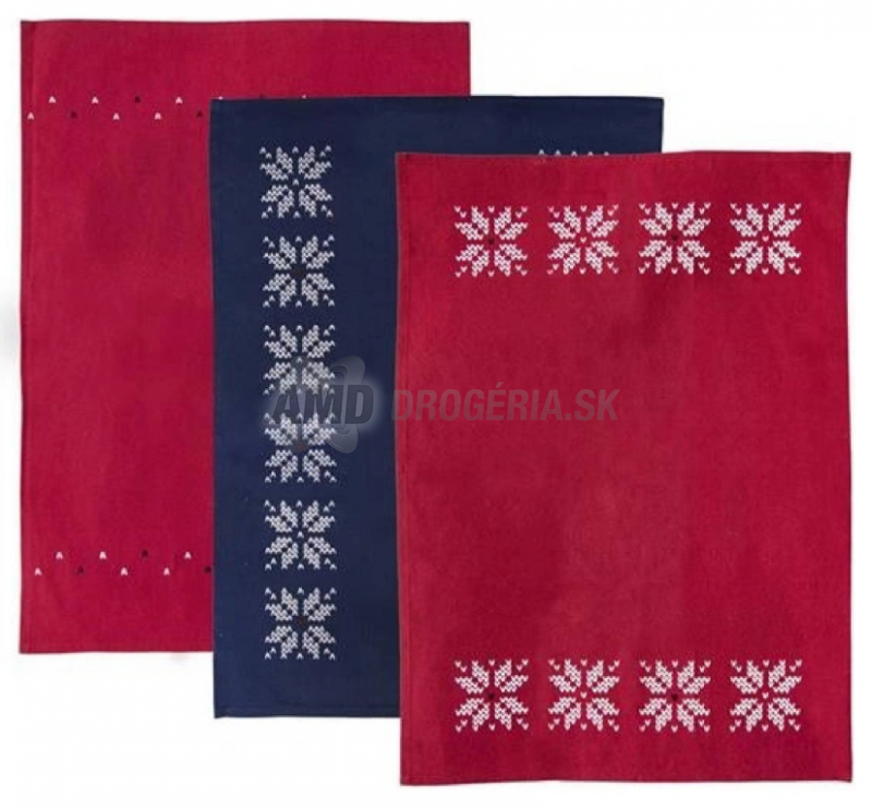 Súprava obsahuje 3 kusy utierok s rozmermi 70 × 50 cm, pričom každá má odlišný dizajn inšpirovaný severskými vzormi. Utierky sú vybavené pútkami na zavesenie, takže ich môžete mať vždy prakticky poruke.