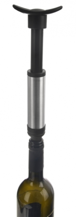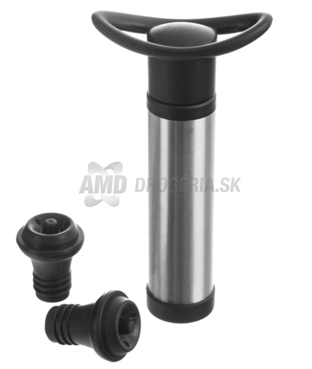 Táto praktická sada na uzatváranie načatých fliaš vína obsahuje vákuovú pumpičku a 2 zátky. Fľašu uzavriete zátkou, na ktorú nasadíte pumpičku a niekoľkokrát zapumpujete, kým nepocítite rastúci odpor. Týmto spôsobom sa z fľaše odsaje prebytočný vzduch. Následne pumpičku zo zátky zložíte a fľaša zostane vákuovo uzavretá.