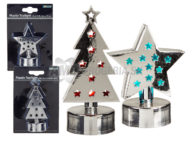 Vianočná plastová LED dekorácia strieborná, rozmery 8,5 x 4 cm, 2 druhy, farebné LED svetlo