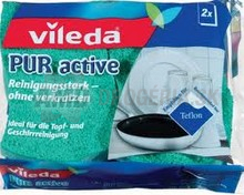 Vileda Pur Active špongia na riad 2ks Vileda PUR active špongia na riad 2ks. Vydrhnite bez poškriabaniu. Špeciálna vrstva odstráni zaschnutú nečistotu bez poškriabaniu aj jemného povrchu. Pred použitím na veľmi jemnom povrchu, vyskúšajte na skrytých plochách.