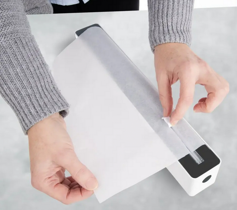 Vďaka špeciálnej drážke môžete fóliu pohodlne povytiahnuť a presne odrezať na rozmer misky, plechu alebo balenie desiaty. Rezanie je rýchle, bezpečné a bez zbytočného trhania.