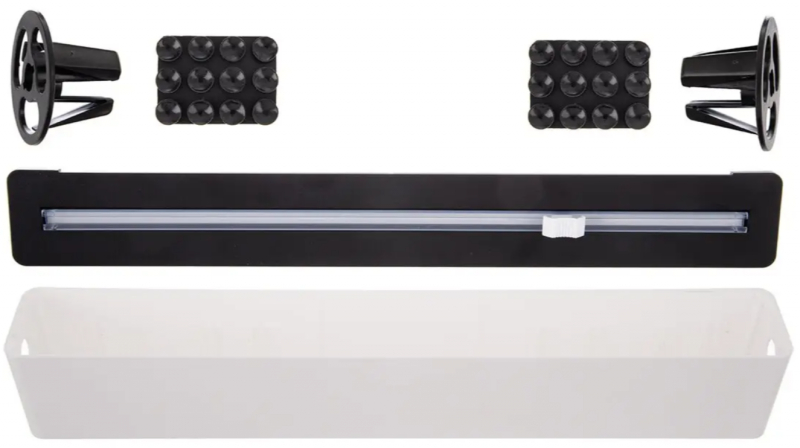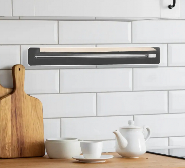 Zásobník je vybavený vnútornými zarážkami na stabilné uloženie rolky a kvalitným rezacím mechanizmom. Možno ho uložiť do zásuvky, na kuchynskú linku alebo pripevniť na hladký povrch bez nutnosti vŕtania.