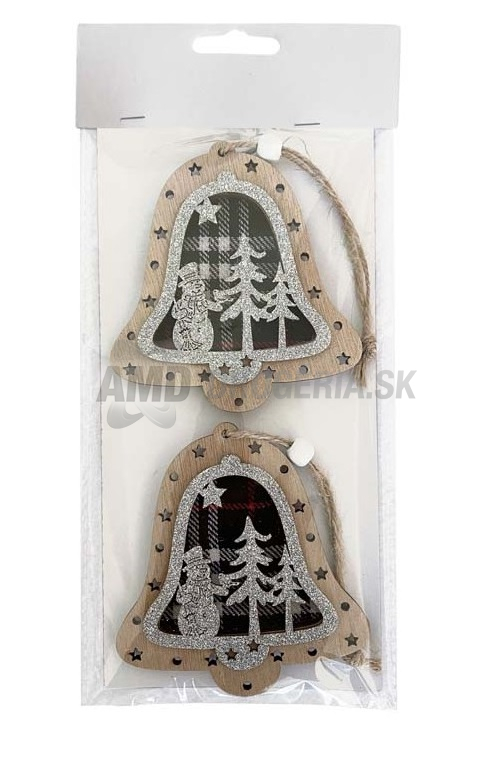 ZÁVES DREVO ZVONČEK S TRBLIETKAMI STRIEBORNÉ 2KS 95X100MM