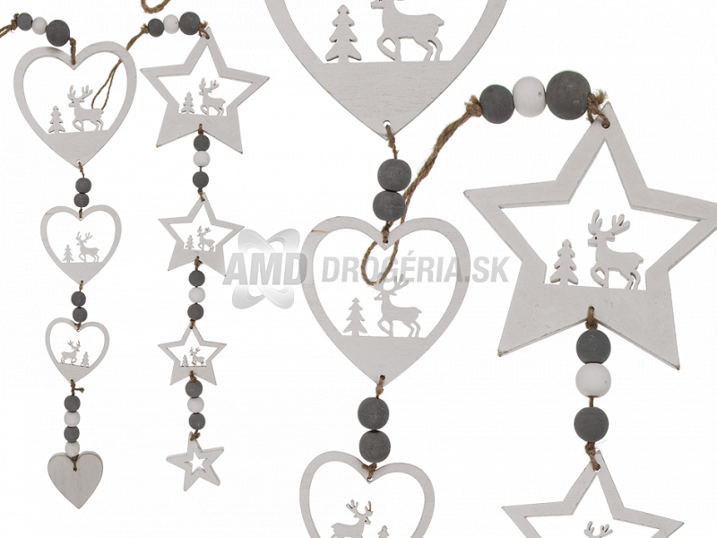 Vianočná drevená dekorácia, dĺžka 75 cm, rozmery ozdoby 15 x 10 cm, 2 druhy, cena za 1 balenie